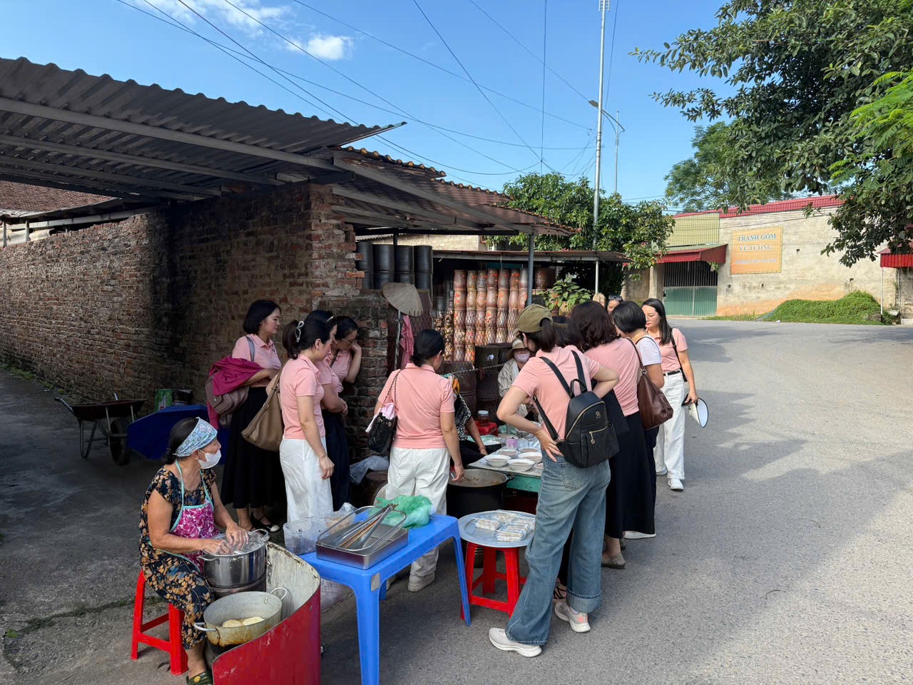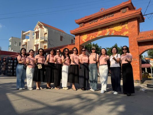 Trong chuyến tham quan, đoàn khách được nghe giới thiệu về lịch sử hình thành làng nghề, trò chuyện cùng nghệ nhân và trực tiếp trải nghiệm nặn gốm, tạo nên sản phẩm của riêng mình. Những nụ cười rạng rỡ, những chiếc nón lá và tà áo dài truyền thống càng làm không khí thêm phần ấm áp, thân thương.